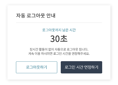 시간 연장 수단은 제공하였지만, 연장에 주어진 시간이 충분하지 않은 자동 로그아웃