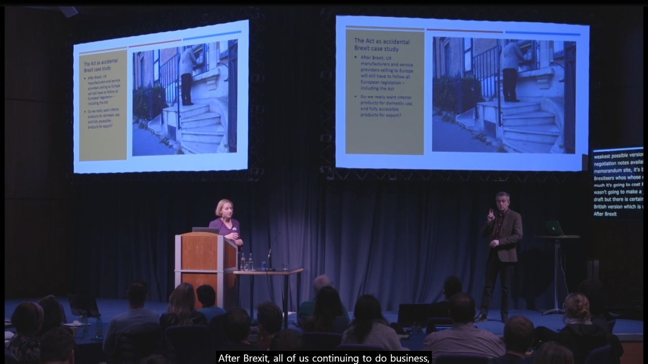 영국이 EU를 탈퇴하면서 영국의 접근성 규정 준수 또한 불투명한 상태가 되었습니다. 영국 의회가 EU의 접근성 제도를 계승하여 자체 규정을 만들거나, 더 나은 내용의 규정을 마련한다면 환영할 일입니다. 그러나 내용이 후퇴할 가능성 역시 있습니다. 특히, 스마트폰, 랩톱, ATM을 포함한 키오스크 등 전자기기의 접근성 규정을 광범위하게 규정하고 있는 EAA(유럽 접근성 법)이 온전히 영국에 계승될 것인가가 큰 관심사입니다. EAA에서는 장애를 가진 사용자가 특별한 장비 등을 구매하지 않고도 시중에 판매되는 전자기기에 접근할 수 있어야 한다고 규정하고 있기 때문입니다.