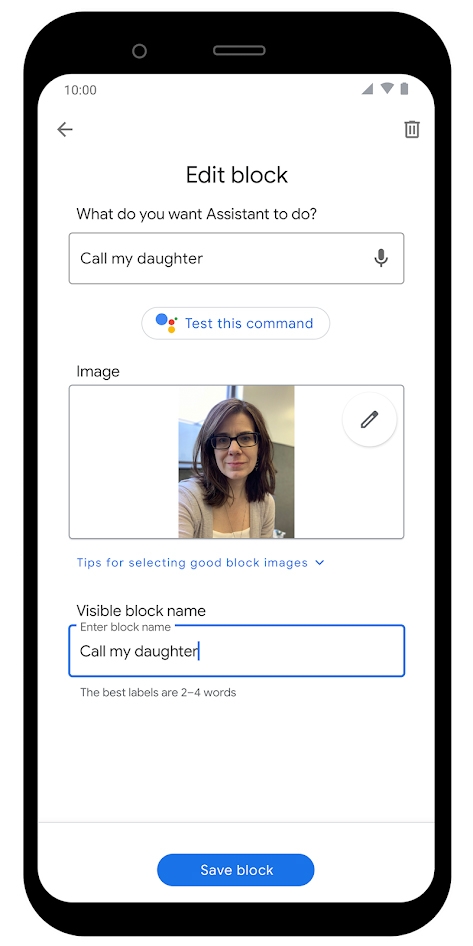 사용자들이 스마트폰을 이용해 어떤 작업을 완수하기 위해서는 몇 개의 단계를 거쳐야 합니다. 이를테면 누군가에게 메시지를 보내기 위해 홈 화면에서 메시지 애플리케이션을 찾아 실행하고, 보내고자 하는 사람의 연락처를 올바르게 선택한 다음 메시지 내용을 입력하여 “보내기” 버튼을 눌러 메시지를 전송해야 합니다. 메시지 보내기와 같이 비교적 작업의 단계가 적은 경우 큰 어려움이 없지만, 작업 목표까지의 단계가 복잡하면 인지장애 사용자 및 디지털 기기 사용에 어려움을 겪는 사용자가 작업을 완료하지 못할 가능성이 증가합니다. 따라서 구글은 루틴으로 작성할 수 있는 작업을 그룹화하여 하나의 버튼으로 실행할 수 있도록 하는 Action Blocks를 공개했습니다.