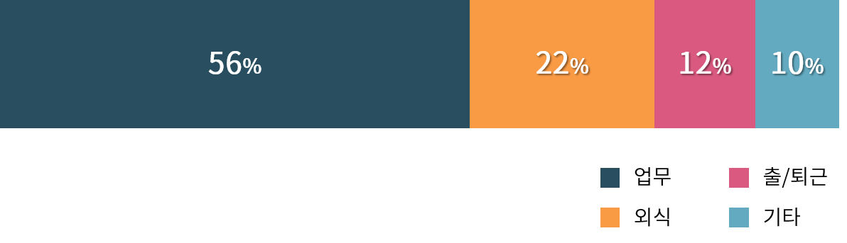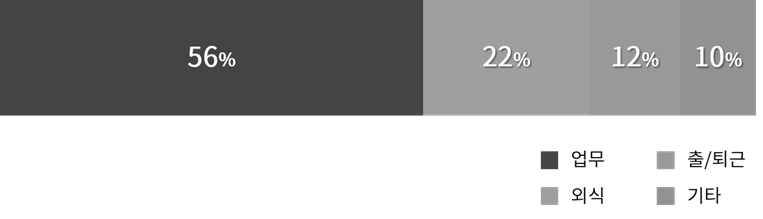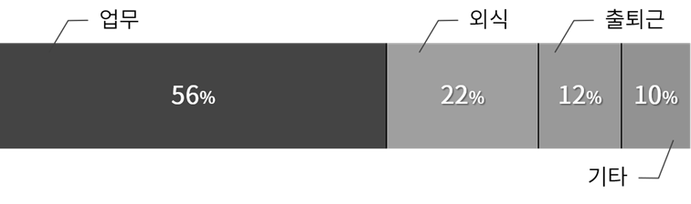 일반 모드에서는 범례의 색상에 따라 수치가 매칭되어서 구분할 수 있지만, 고대비 모드에서는 범례를 색상으로 구분하기 어렵게 되어 명도의 대비가 뚜렷한 '업무' 범례를 제외하고 나머지 범례의 수치를 알기 어렵습니다.